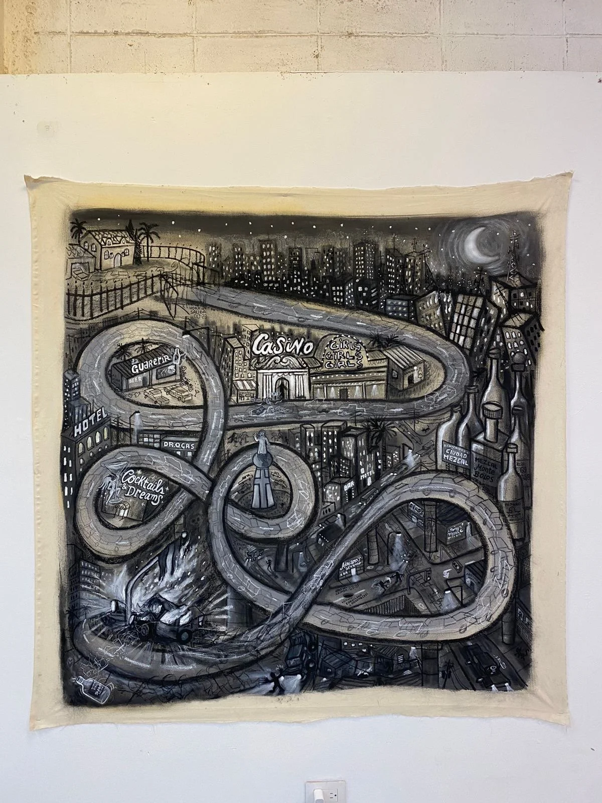Gabriel Granadino, fascinado por las historias de fugas de prisioneros, cárceles de alta seguridad y el caos urbano, explora estos temas como dinámicas que la ciudad adapta a su funcionamiento. Con una técnica que juguetea entre el dibujo y la pintura, narra un viaje en el que sus personajes, desde el encierro, buscan la manera de fugarse en estampida. A través de sus animaciones análogas, imagina los sentires, terrores y sueños de los reclusos, para que finalmente regresen a la misma ciudad donde comenzaron.